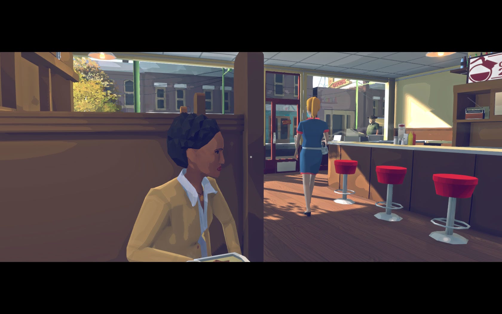 Παρ’ ότι δε διαθέτει ούτε γραμμή διαλόγων, το Virginia βρίσκει τον τρόπο να δημιουργήσει μία πειστική ατμόσφαιρα — αυτό του το δίνω. Βέβαια από ένα σημείο κι έπειτα, ένιωθα σχεδόν ανεπιθύμητος, σαν το παιχνίδι να ήθελε να συνεχίσει μόνο του, ανεξαρτήτως του αν εγώ ακολουθούσα ή όχι. Το δε gameplay του ακροβατούσε μεταξύ απλοϊκού puzzle game και walking simulator, χωρίς ποτέ να μου εξηγήσει τι ήθελε από εμένα.